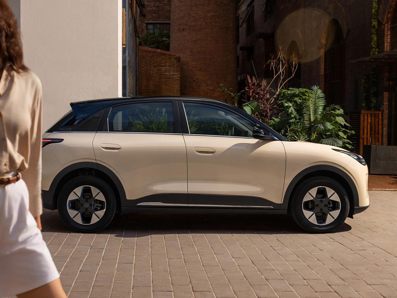 接著我們看設計,新車的整體造型以圓潤為主,給人的第一感覺就是可愛、時尚,很明顯新車的潛在用戶為女性群體。具體來看,封閉式格柵、圓角的三角形大燈都頗具特色,并且新車的機蓋下方還有一個小的儲物格,由此也能看出新車的三電集成度很高。