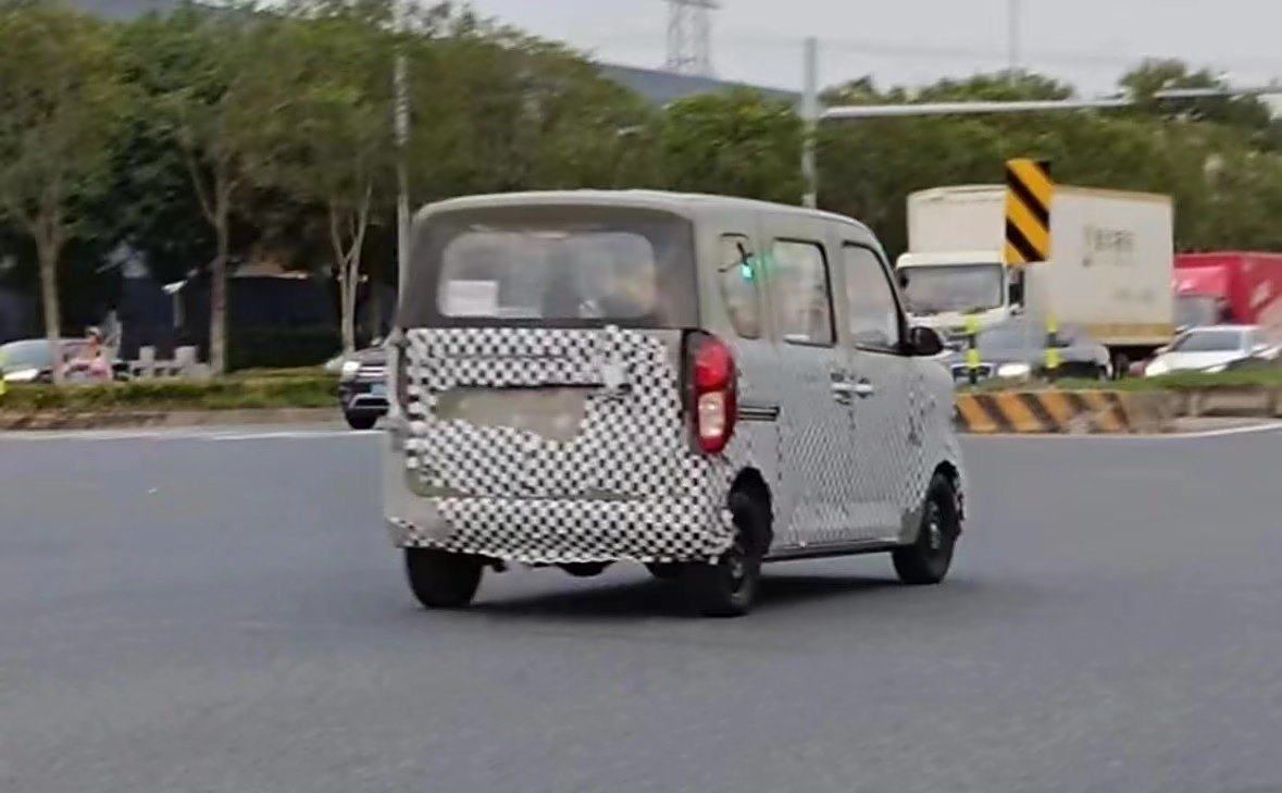 來到車側,新車采用的是側滑門設計,實用性肯定要比傳統開門方式更強。輪圈尺寸并不大,可能是12或13英寸,所以可以預見新車的價格也不會很貴。另外,短前后懸+長軸距的設計,車內空間同樣值得期待。