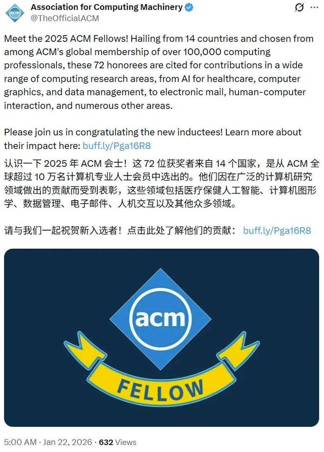 剛剛,美國計算機(jī)協(xié)會 ACM(Association for Computing Machinery)公布了最新一屆會士名單。