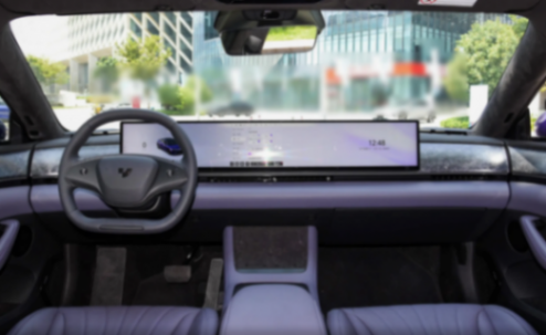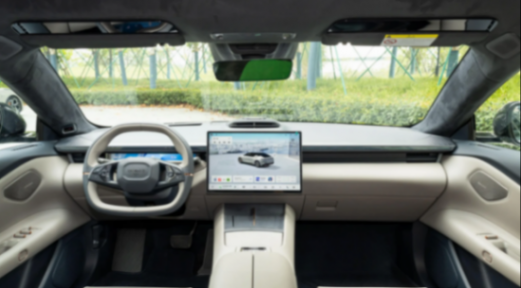 而極越07的智能座艙氛圍就比較明顯了,中控臺(tái)搭載35.6英寸中置貫穿曲面連屏,第一眼的視覺(jué)沖擊力就比較強(qiáng),在功能上,因?yàn)樾萝?chē)加入了全新端到端感知大模型,無(wú)論是影音娛樂(lè)體驗(yàn)感還是智駕能力都有很大提升。可以選裝的U型方向盤(pán)的設(shè)計(jì)是一大亮點(diǎn),和整車(chē)運(yùn)動(dòng)化風(fēng)格相匹配,上方僅保留了圓形滾輪和基礎(chǔ)按鍵,讓人很有駕駛欲望。
