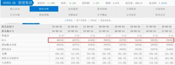 說真的,看看聯想這兩年的業績就知道楊元慶為啥這么拼了。2024財年營收掉了8.21%,凈利潤更是暴跌37.15%,連著兩年業績都在往下掉。這種情況下,楊元慶肯定得想辦法啊!