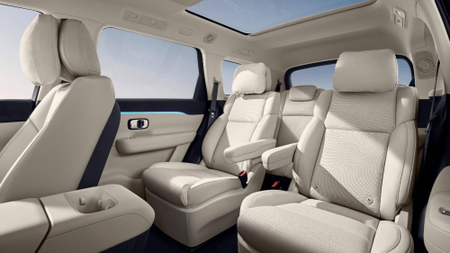 eπ008的車身尺寸在同級中表現突出,5米車長配合3米軸距,即使是6座版本也能確保每個座位享有寬敞空間,完美適配二胎家庭需求,后備廂容積同樣可觀,輕松容納全家行李。在舒適性配置上,eπ008今年推出的如奕版車型將以往需要選裝的“冰箱彩電大沙發”升級為標配:配備可實現5度制冷或50度制熱的冷暖兩用智能冰箱;6座版的二三排座椅間甚至支持電動滑移;后排配備15.6英寸智能娛樂屏;5座版標配魔毯座椅,6座版則提供零重力座椅。再結合20揚聲器WANOS全景聲音響、遮陽簾等配置,將后排乘坐體驗提升至VIP級別。