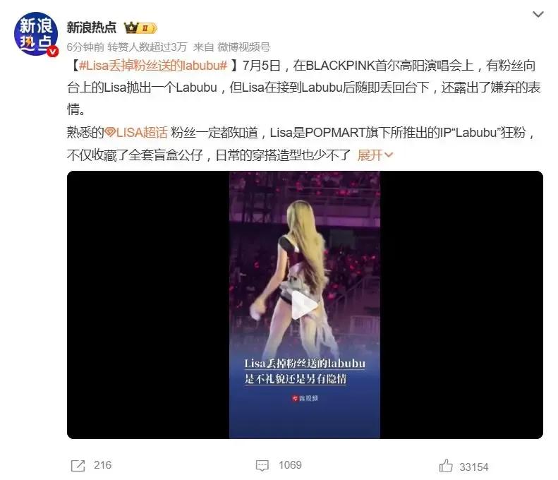 7月的風卷著應援棒的藍光,高陽體育場的舞臺卻被一聲驚呼劃破——Lisa彎腰撿起粉絲拋來的labubu時,發梢還沾著《Pink Venom》的勁曲余韻,可當看清那團毛茸茸的玩偶,她的睫毛猛地顫了顫,嘴角的笑意瞬間凝固。下一秒,那抹粉色被"啪"地甩向臺下,像丟棄一塊燙手山芋。