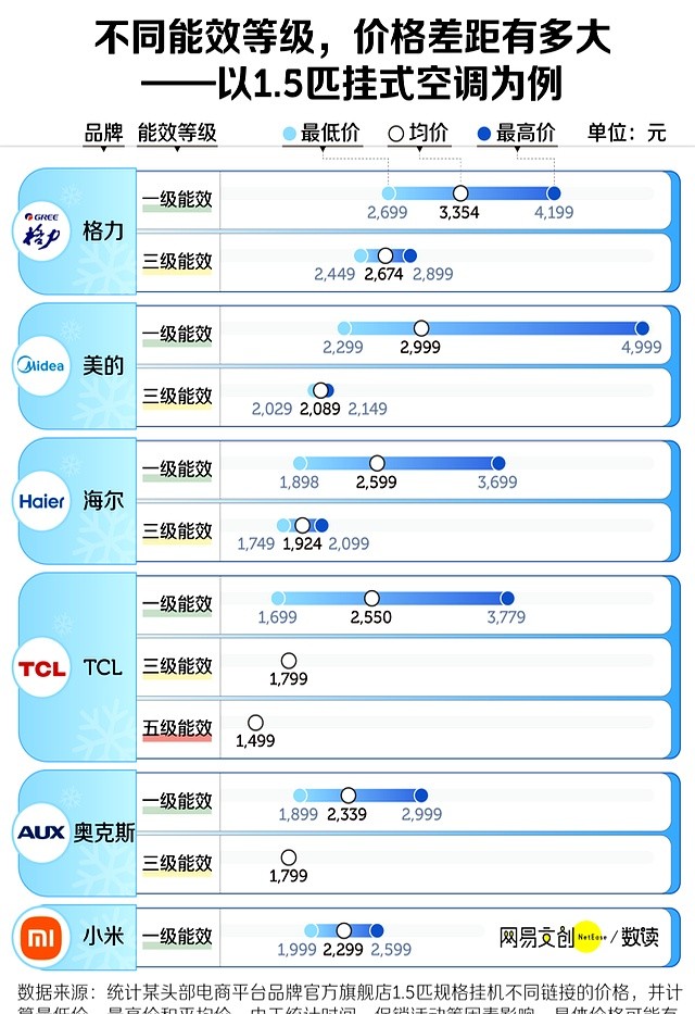 其實(shí),有些一級能效空調(diào)也就一千多,比三級能效還便宜。