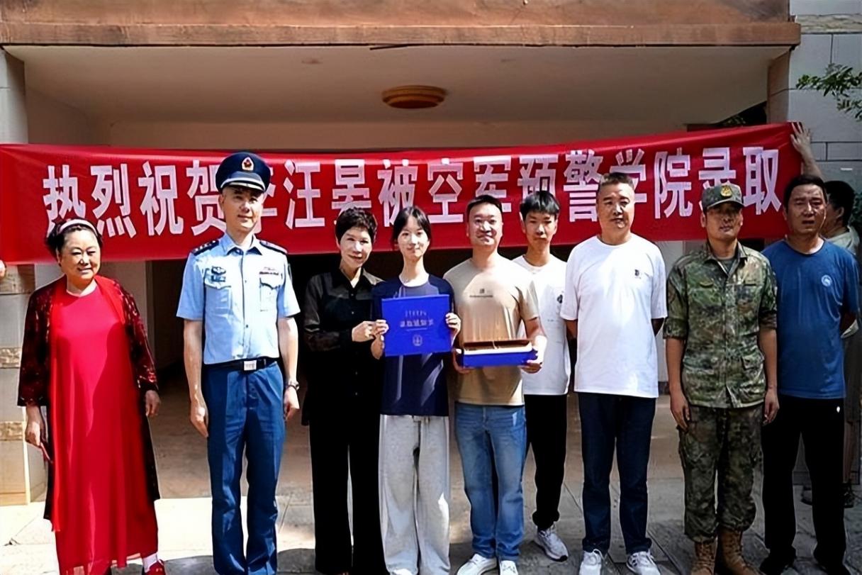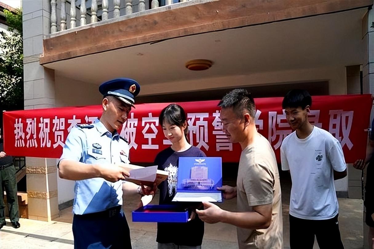 2023年7月18日,赤壁市赤壁印象小區迎來這支特殊的隊伍——空軍預警學院帶隊干部、赤壁市人武部、教育局和社區工作人員一起,把印有“熱烈祝賀李汪晏同學被空軍預警學院錄取”的橫幅停在6棟201門口。