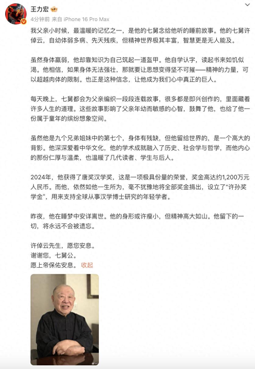 據北京日報,2024年,許倬云接受采訪。當主持人問及最重要的遺憾時,許倬云沉思8秒后,他給出了這樣的問答:“但悲不見九州同。”