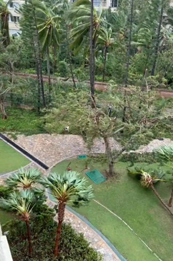 黎女士在亞龍灣住的是海景房,風大得厲害。24 日上午,樓下海灘就不讓人進了,那時海浪已有一兩米高。到了下午,酒店加強安保,保安守著大堂,沒特殊情況不讓客人外出。工作人員從下午開始,忙著給大堂玻璃加加固條,因為強風下,玻璃彎曲得厲害,看著像馬上要碎,好在最終頂住了壓力。