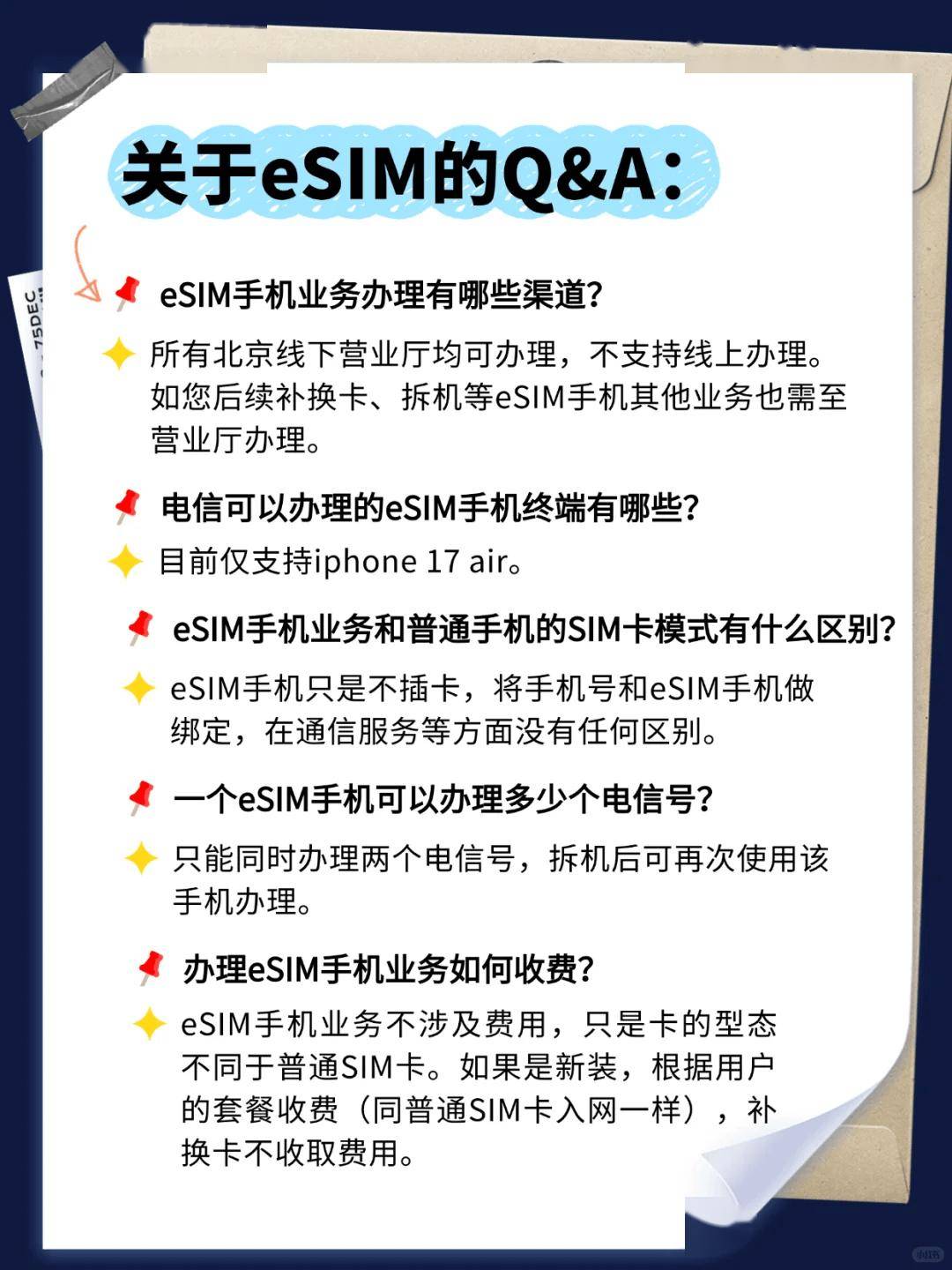 9 月 10 日消息,北京電信今晚通過官方小紅書賬號宣布,其已經具備 eSIM 開通能力,9 月 19 日隨 iPhone Air開售同步上線體驗,套餐資費、權益不變。