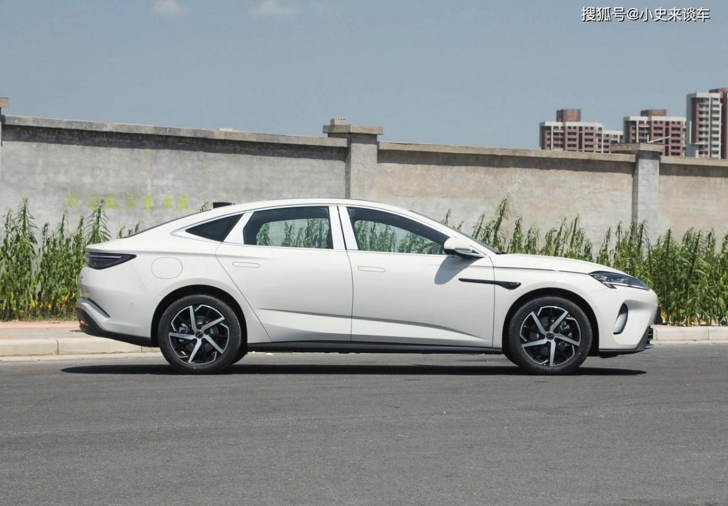 再來看車身側面部分,車身尺寸升級至499519001495mm(軸距2900mm),修長的溜背車頂與飛馳躍動腰線構成雙重動態語言。五輻刀鋒輪轂采用空氣動力學優化設計,配合C柱上揚的窗線,營造出蓄勢待發的俯沖態勢。車門下方雙層水滴漣漪裝飾條不僅降低風噪,更在光影流轉間呈現海浪般的律動美感。后視鏡集成輔助駕駛小藍燈,與隱藏式門把手共同構成智能交互的視覺符號。