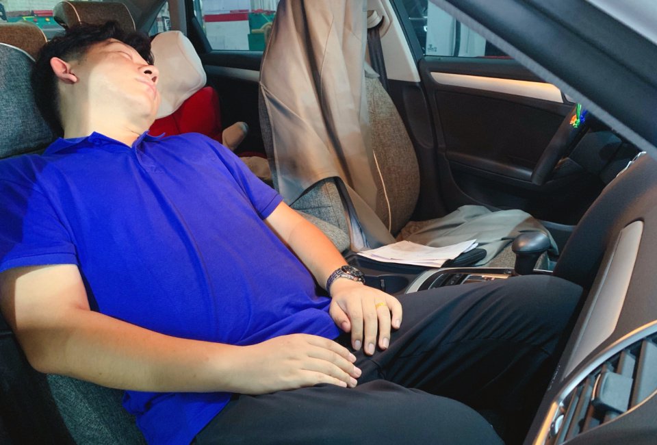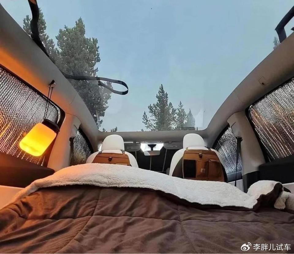 其次就是很多新能源汽車在設計的時候,就留足了車內睡覺的空間,我指的是后排放倒之后的平整度、休息模式等,有些車型后排放倒之后,完全就是一個純平面,放一張毯子,就可以睡覺了,有些車型則通過氣墊床實現了完全平坦。當然還有一些品牌的車型,在車輛停在一些斜面的時候,空氣懸掛還能“自動”,保證車內是水平狀態的,不會睡著睡著就滾掉了。