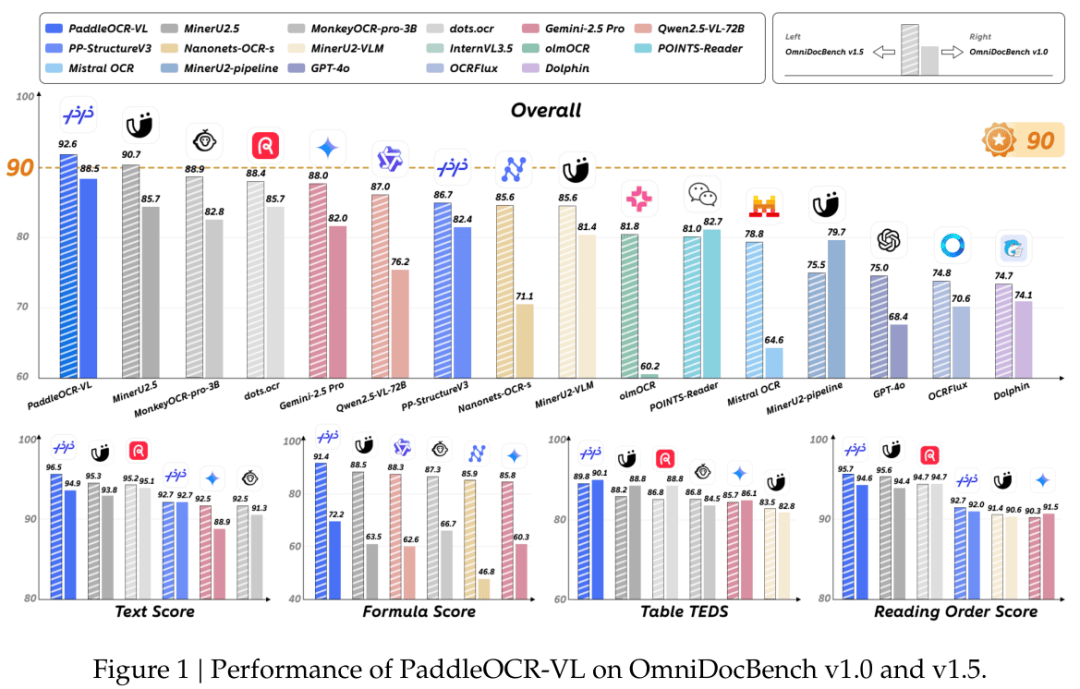 百度用一個(gè)僅0.9B參數(shù)的模型,在權(quán)威的文檔解析評(píng)測(cè)榜單OmniDocBench V1.5上,拿下了92.6分的綜合成績(jī),位列全球第一。