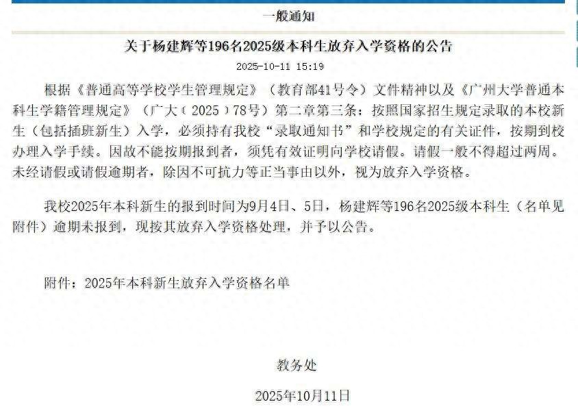 最近東華大學(xué)官網(wǎng)掛出公告,說(shuō)43名2025級(jí)本科新生沒(méi)按時(shí)報(bào)到,按自動(dòng)放棄入學(xué)資格處理,消息一出來(lái)網(wǎng)上就吵開(kāi)了,記者問(wèn)了學(xué)校,招生辦老師說(shuō)學(xué)生沒(méi)來(lái),學(xué)校只能按流程走,公示一下,說(shuō)學(xué)校拒絕就讀是斷章取義,他們講開(kāi)學(xué)后輔導(dǎo)員一個(gè)個(gè)聯(lián)系過(guò)這些學(xué)生,有的打算復(fù)讀,港澳臺(tái)的學(xué)生想留在本地,還有十幾個(gè)已經(jīng)找到工作,干脆不讀了,準(zhǔn)備讀第二學(xué)位。