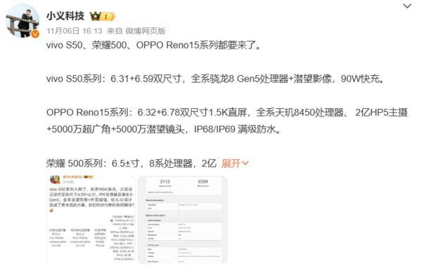 OPPO官宣Reno15系列11月10日發布 宋雨琦代言?