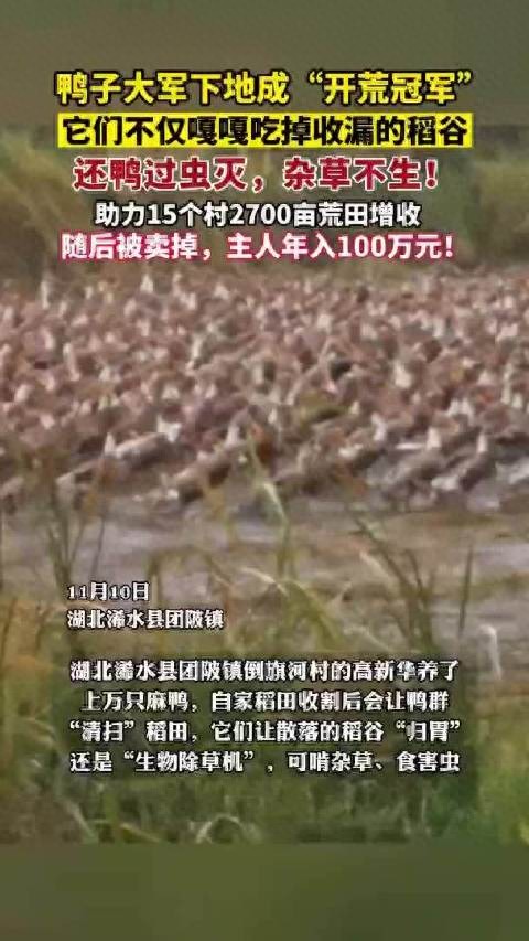 鴨子能種地?"——別笑,這事兒還真發生了!湖北某村上演了一出"鴨子開荒記",一群嘎嘎叫的小家伙,硬是把一片荒地變成了豐收田。這背后到底藏著什么玄機?